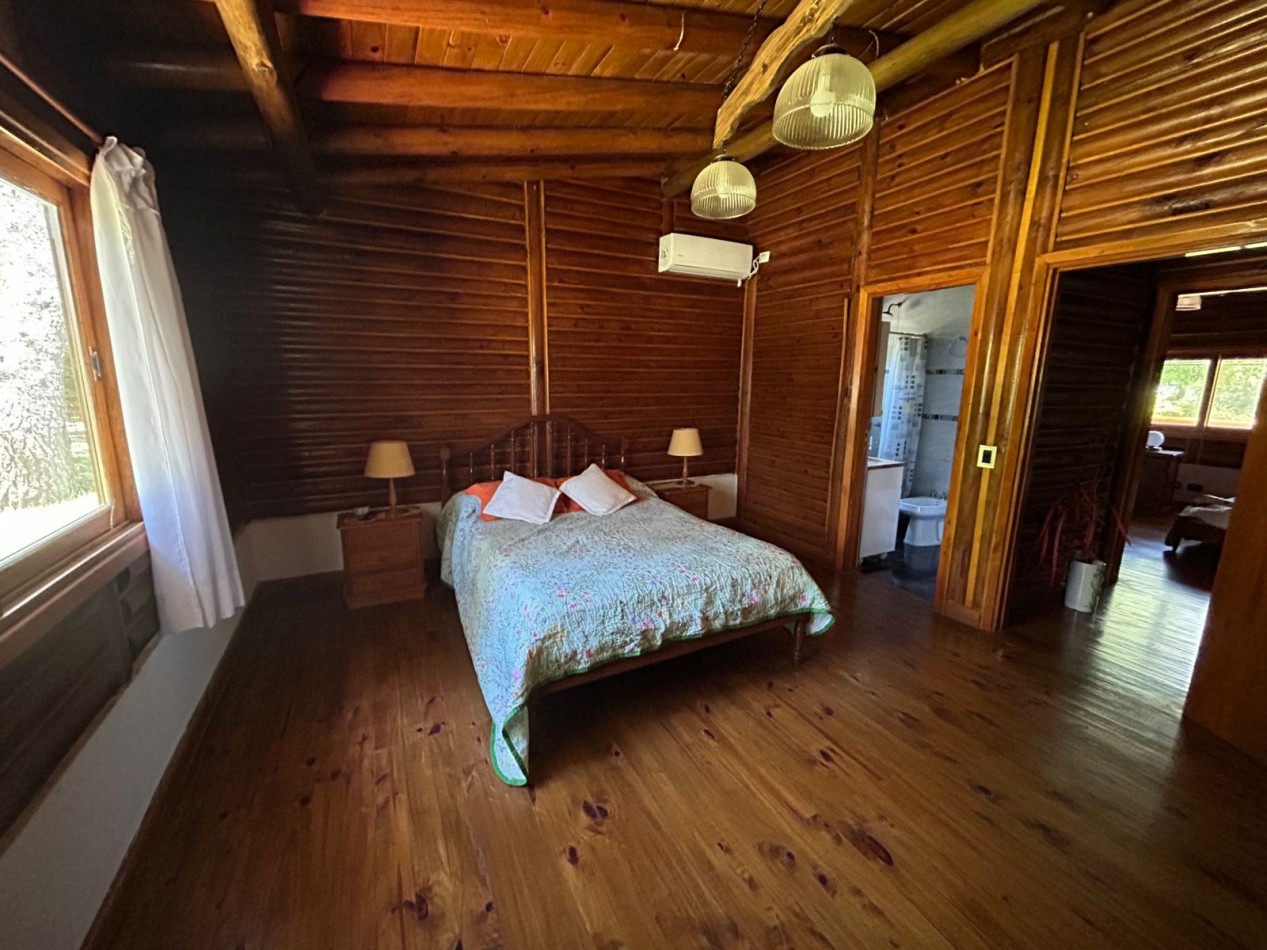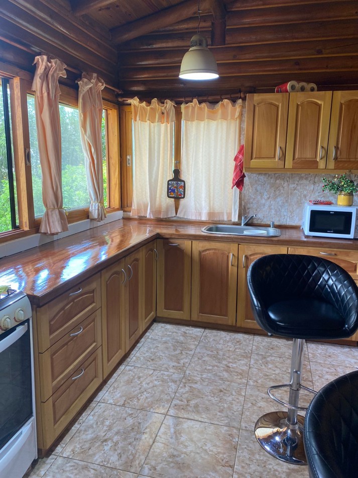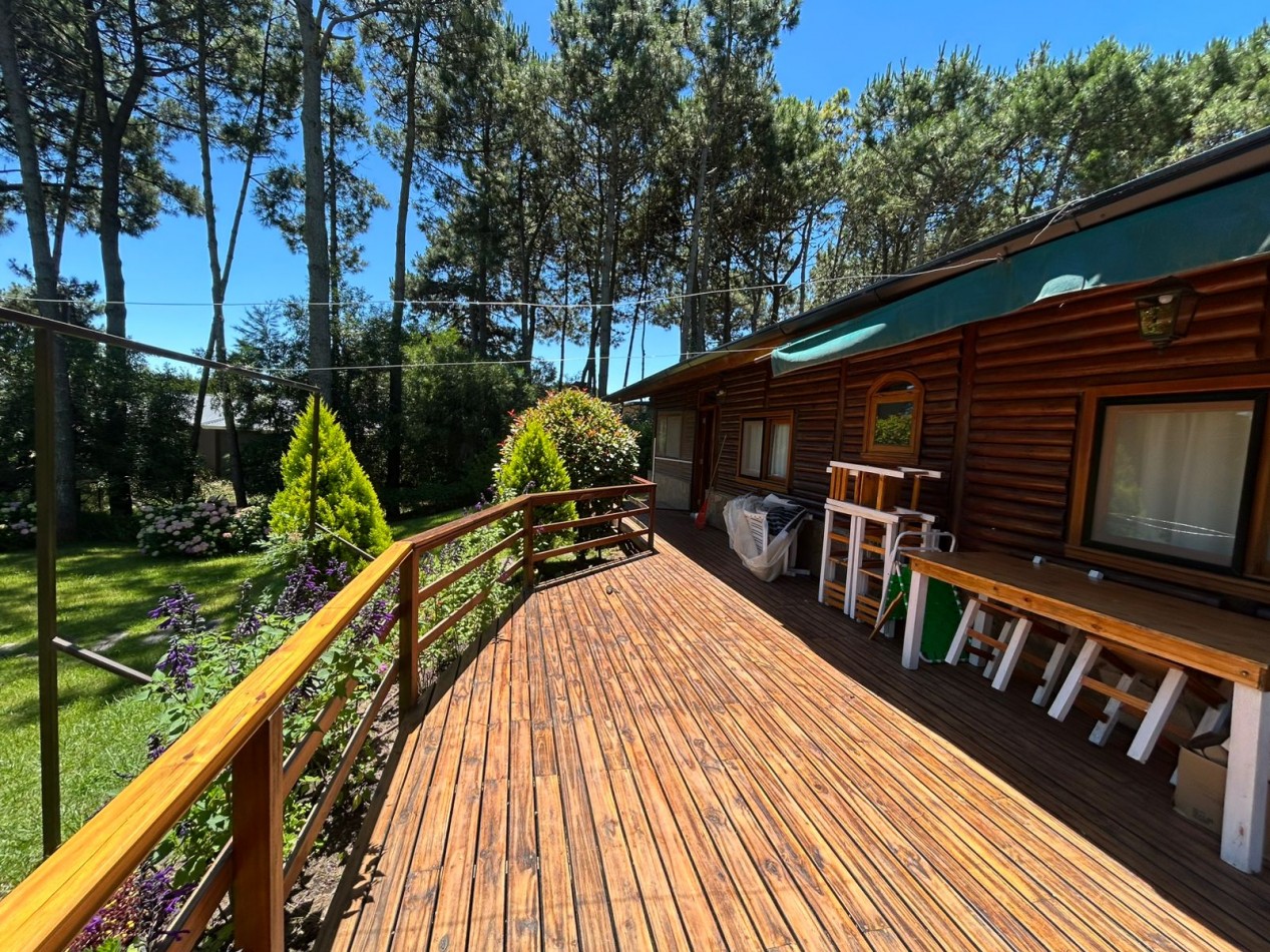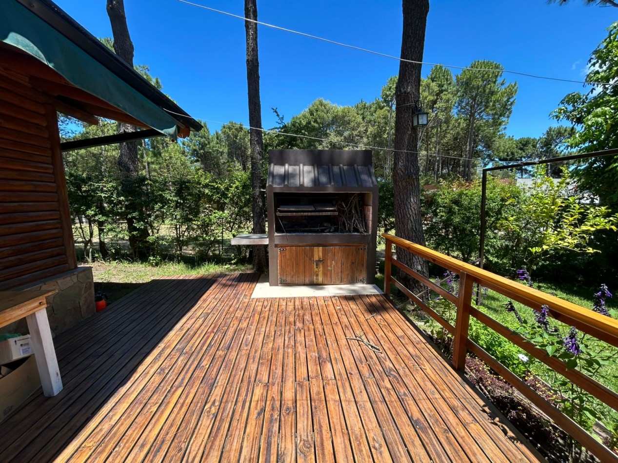 Hermosa cabaña de tres habitaciones (una de ellas en suite), dos baños, living y cocina.