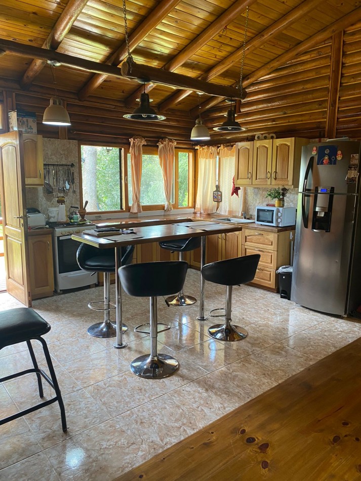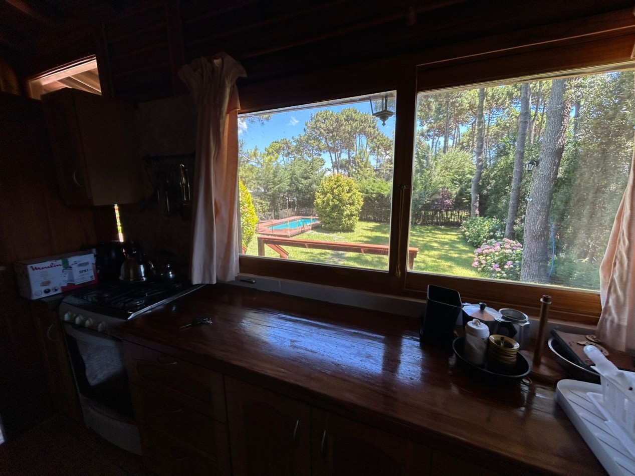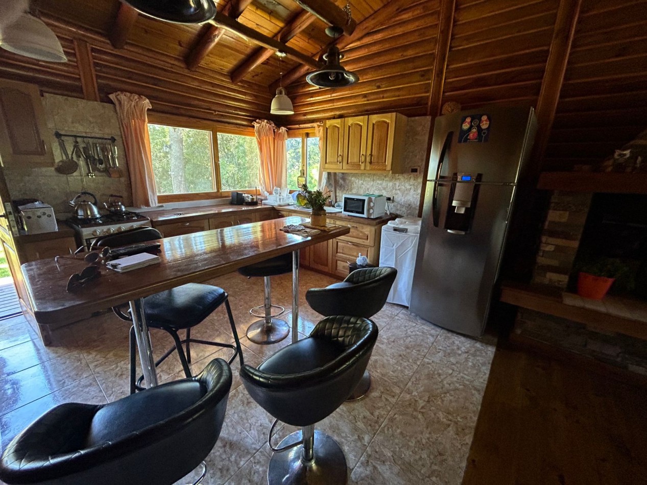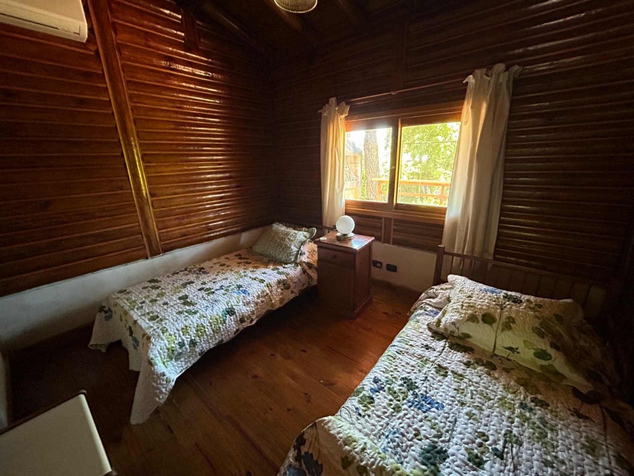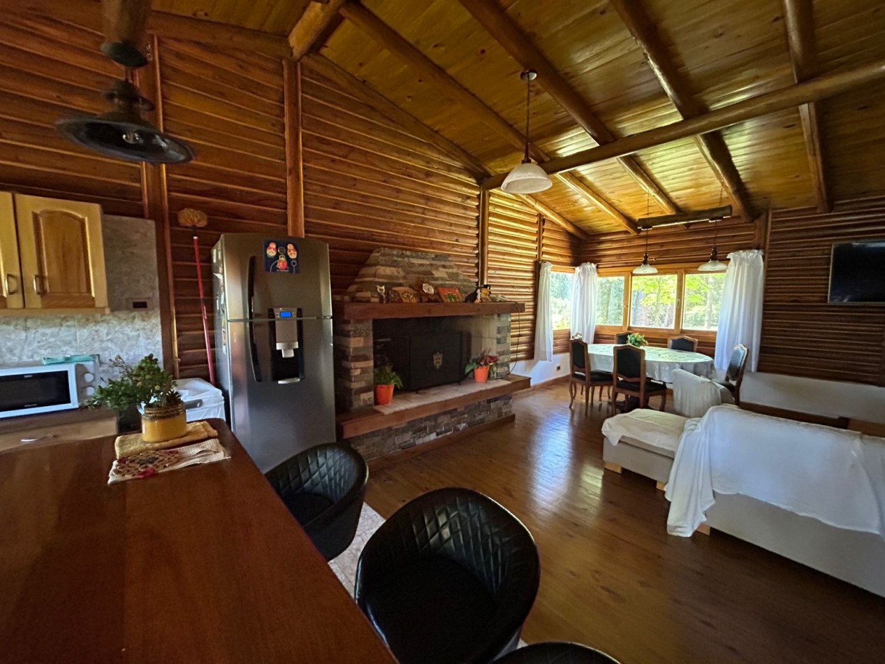 Hermosa cabaña de tres habitaciones (una de ellas en suite), dos baños, living y cocina.