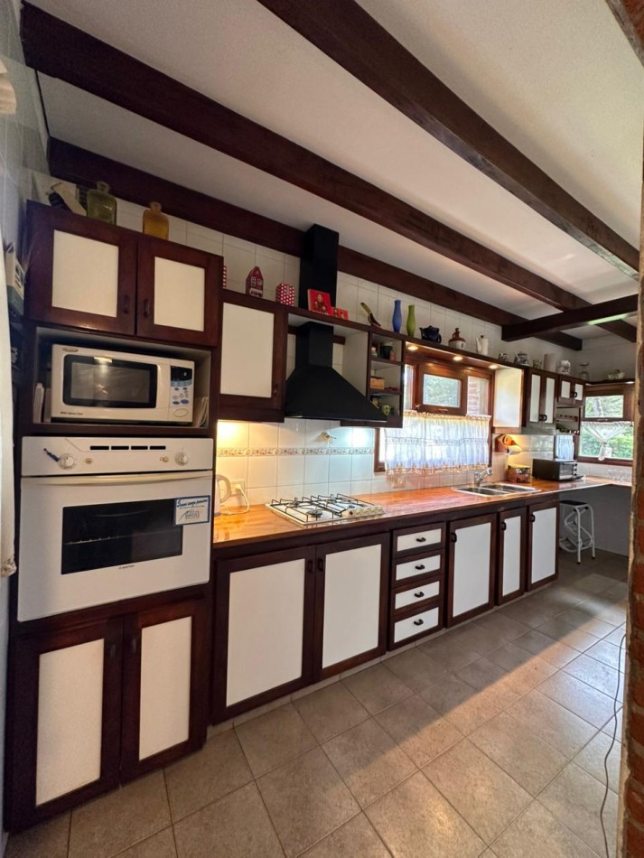 Dispone de 5 ambientes espaciosos, ideales para una familia o para quienes buscan una casa de veraneo cómoda. Su arquitectura combina solidez, estilo rústico y calidez, características muy buscadas en propiedades de la zona.
