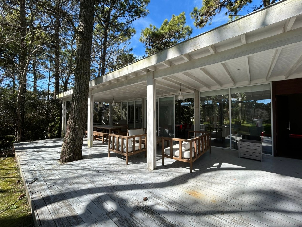 Casa moderna y minimalista en el bosque de Cariló, implantada sobre un lote de 932 m² rodeado de naturaleza, que ofrece privacidad, diseño y excelente calidad constructiva. La propiedad se destaca por su estilo contemporáneo, con techo de hormigón visto y grandes ventanales que integran el interior con el entorno natural, generando espacios luminosos y abiertos tanto hacia el frente como hacia el jardín.